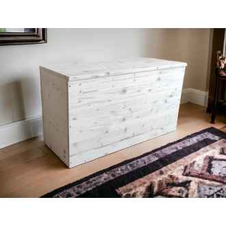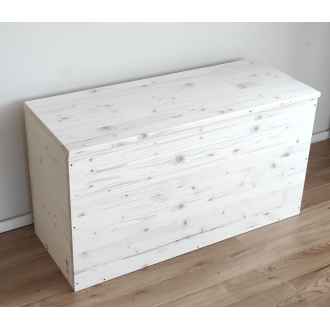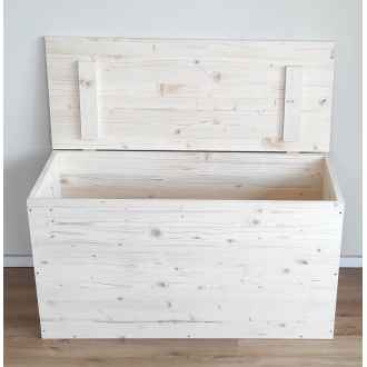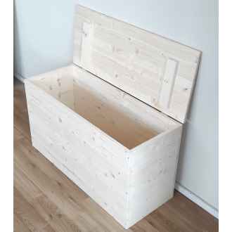 La cassapanca FRANCESCA è costruita con solidi pannelli lamellari di abete spessi 18mm, con angoli arrotondati.