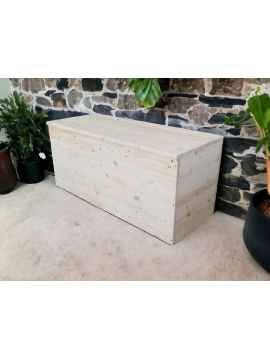 La cassapanca FRANCESCA è costruita con solidi pannelli lamellari di abete spessi 18mm, con angoli arrotondati.