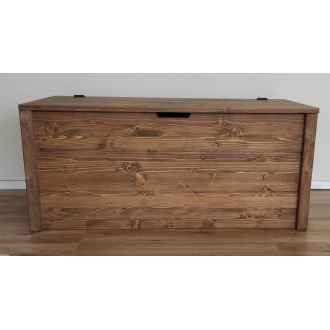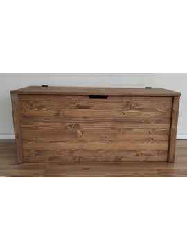 La cassapanca MATEJ è costruita a mano con pannelli monostrato abete da 18 mm. Il fondo e il coperchio sono costruiti con pannelli dello stesso spessore, mentre gli angoli sono formati da listelli di spessore 15 mm.