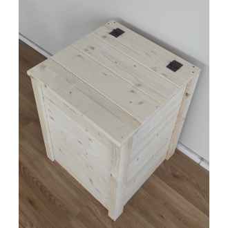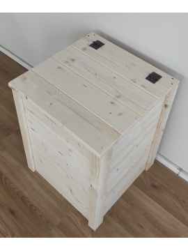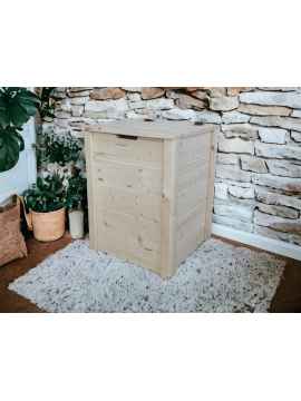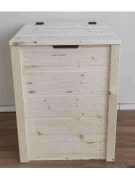 La cassapanca MATEJ è costruita a mano con pannelli monostrato abete da 18 mm. Il fondo e il coperchio sono costruiti con pannelli dello stesso spessore, mentre gli angoli sono formati da listelli di spessore 15 mm.